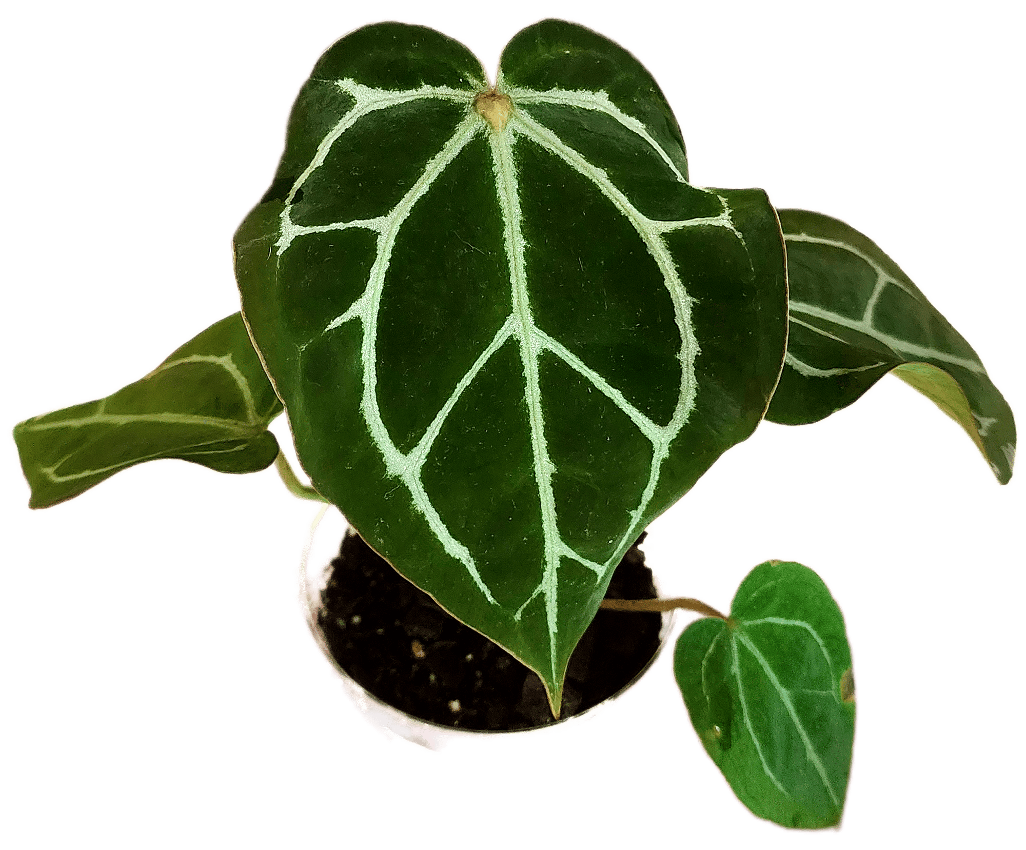 The anthurium Stella Rose is an exclusive hybrid created by Big Beards Anthurium Emporium. A fiery red emergent slowy burns in glittering silver veins and hardening into dark emerald velvet.